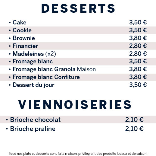 Pour cela, nous préparons maison l'intégralité de nos cartes à partir de produits frais et de saison provenant de producteurs locaux sélectionnés avec soin. Notre équipe a imaginé des recettes originales et savoureuses convenant à toutes les envies et à tous les régimes, à déguster dès le petit-déjeuner et jusqu'au goûter, sur place, à emporter ou en livraison.